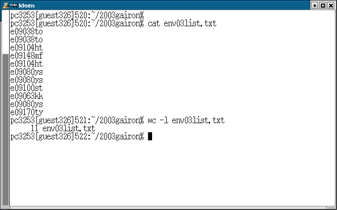(もし,env03list.txtを消去してしまっていたら,もう一度2003gaironディレクトリに移動して,