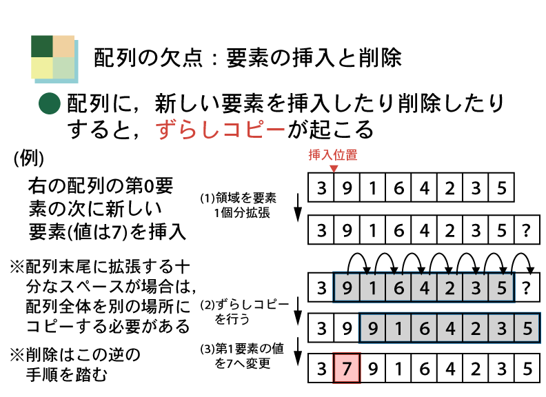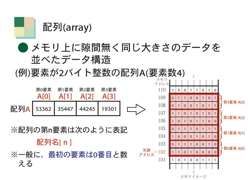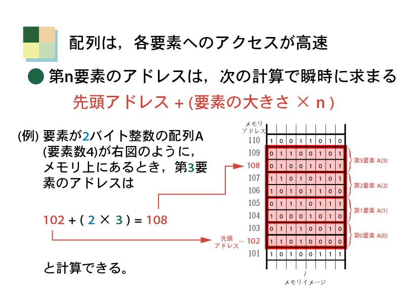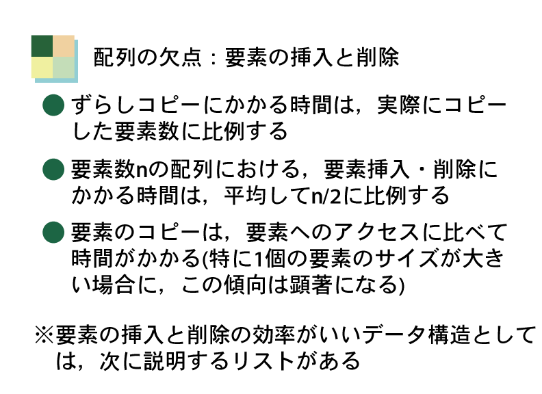 ここでは,配列のデータ構造としての特性をよく考えてみよう。