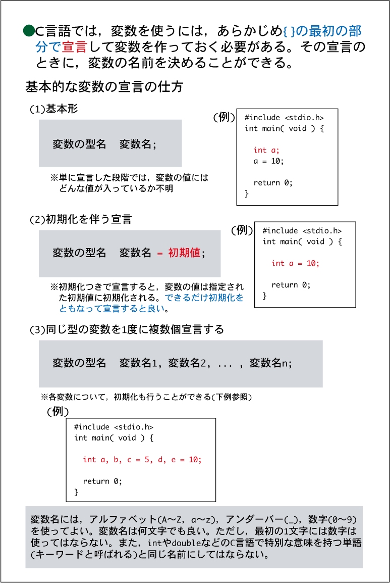 C言語には便利な命令が多く用意されている。例えば画面にメッセージを表示する命令や,