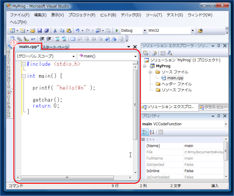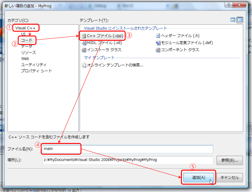 【ソースプログラムファイルのファイル名に「main」と指定したのに,実際には「main.cpp」となったのは何故?】 |