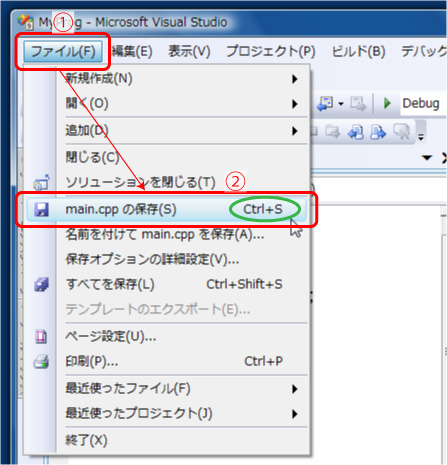 【ファイルの内容を保存する方法1】メニューから保存する |