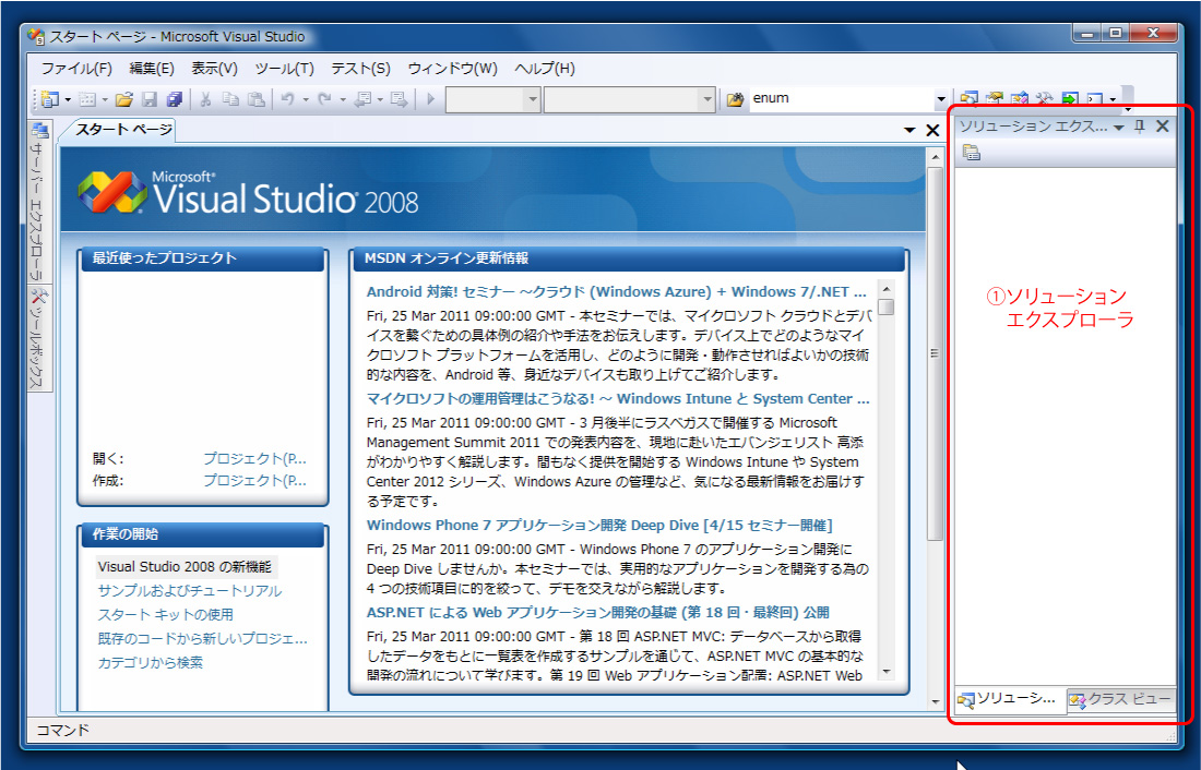 以降は,VisualStudio 2008の画面で説明するが,VisualStudio 2010 もほとんど同じである。