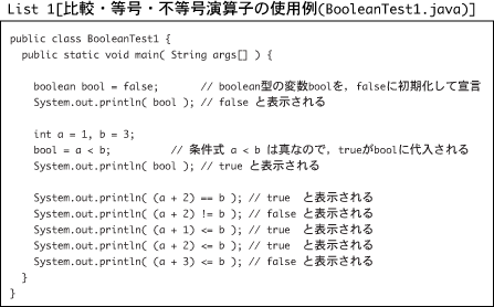 boolean bool = false; // boolean型の変数boolを,falseに初期化して宣言