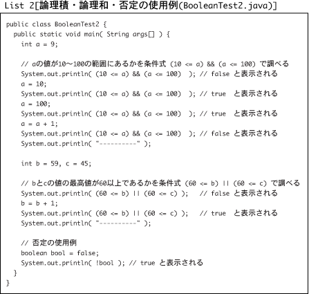 System.out.println( (a + 2) != b ); // false と表示される