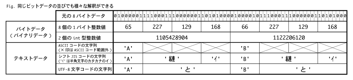 (特定の文字コードにおける)文字として解釈するか,の違いということである(下図)。