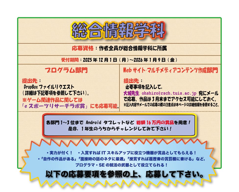 総合情報学部総合情報学科2025年度ソフトウェアコンテスト オフィシャルページ |